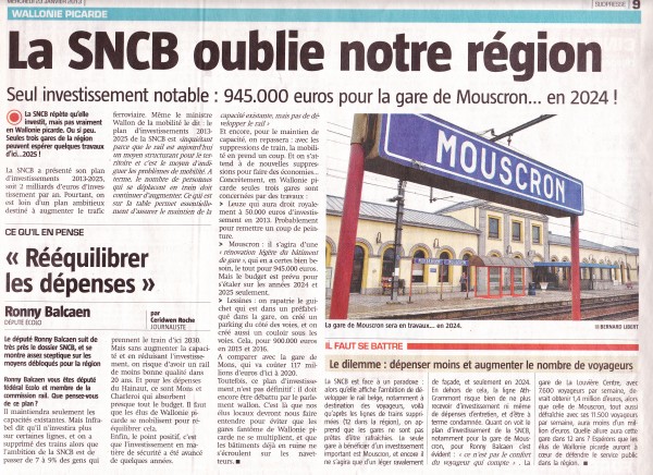 Cet article, paru dans « Nord-Eclair » ce jeudi 24 janvier 2013 reflète bien nos inquiétudes, exprimées notamment lors du précédent conseil communal, à propos de la menace de disparition de la ligne de chemin de fer entre Ath et Grammont…
